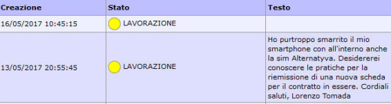“Ho purtroppo smarrito il mio smartphone con all’interno anche la sim Alternatyva. Desidererei conoscere le pratiche per la riemissione di una nuova scheda per il contratto in essere.