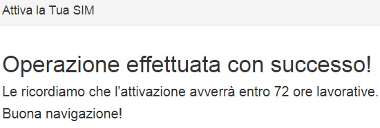 Il passo successivo è l’attivazione della sim a questo indirizzo dove è necessario inserire il codice fiscale/partita iva ed il codice ICCID, il codice seriale della sim, presente sul retro della scheda: