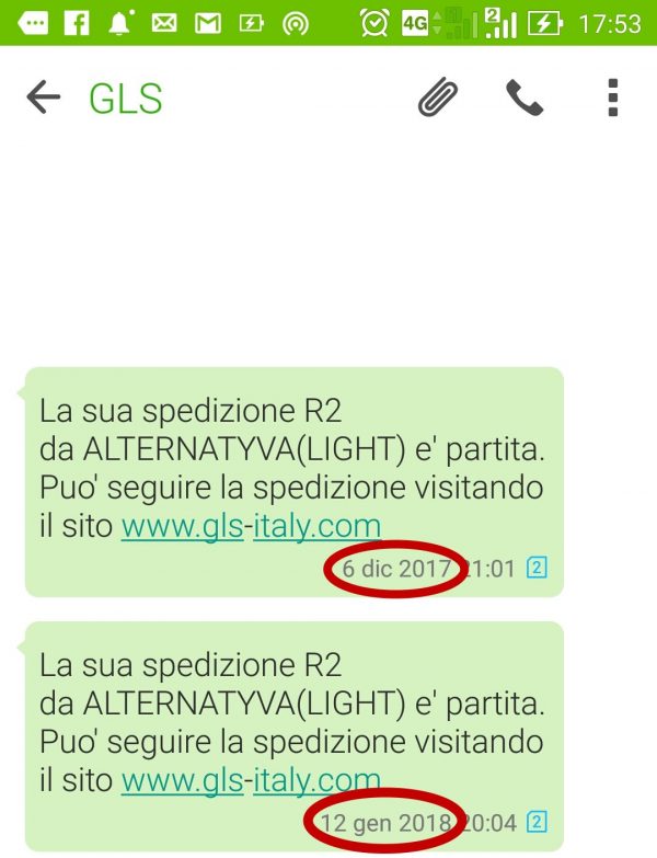 – Il secondo messaggio odierno è invece inerente la spedizione della scheda in sostituzione di quella del precedente messaggio, questa volta non funzionante senza che mi sia stata avanzata una spiegazione plausibile.