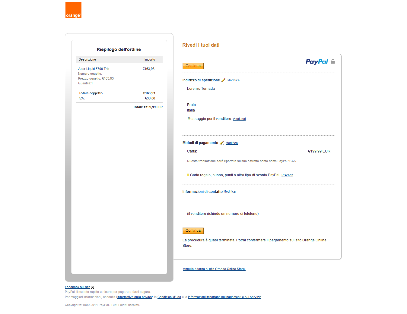 2014-09-26 Acquisto Acer Liquid E700 Trio