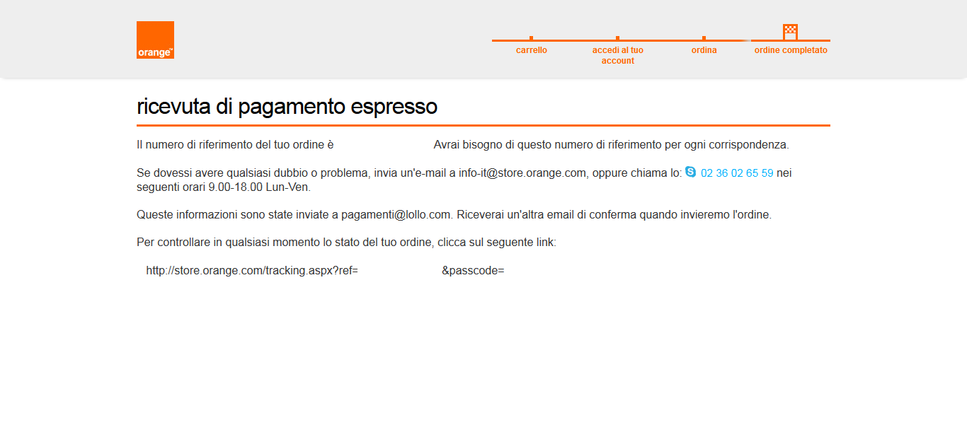 La ricevuta d’acquisto necessaria per un’eventuale assistenza non è presente nella confezione ma, dopo la richiesta via mail, l’assistenza Orange ha provveduto ad inviarmela