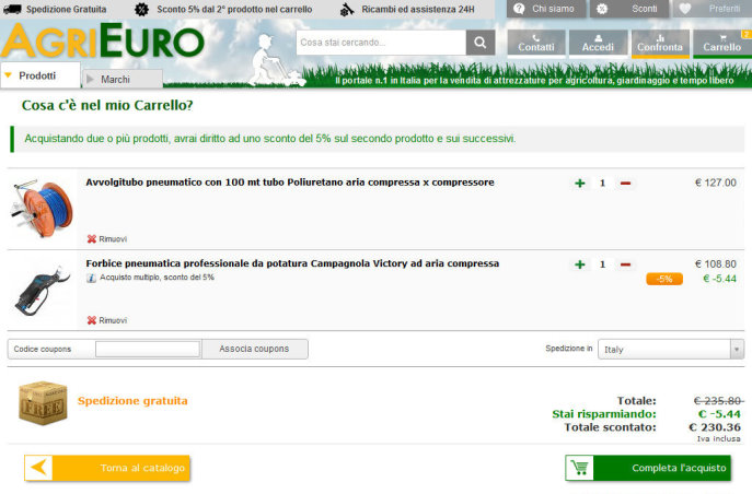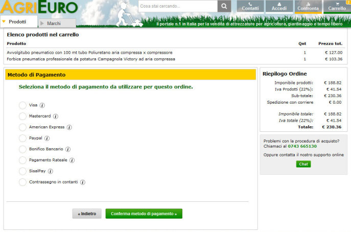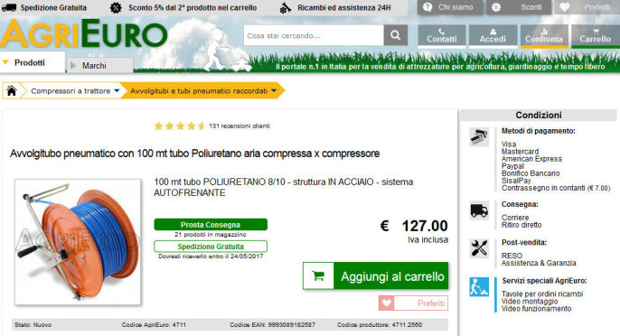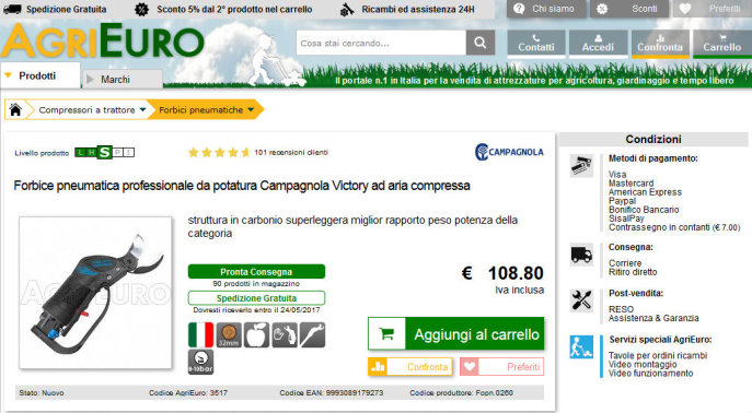Per realizzare questo progetto mi affido ad Agrieuro, uno dei siti più forniti per le attrezzature agricole a prezzi molto concorrenziali.
