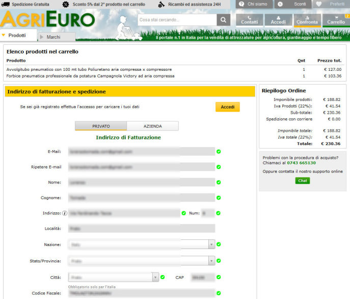 Agrieuro è un’azienda con sede a Spoleto, il nome di dominio agrieuro.com, come da ricerca Whois, è stato registrato il 25 ottobre 2007 ed intestato a Filippo Settimi il titolare della Settimi S.r.l., l’azienda che gestisce lo shop.