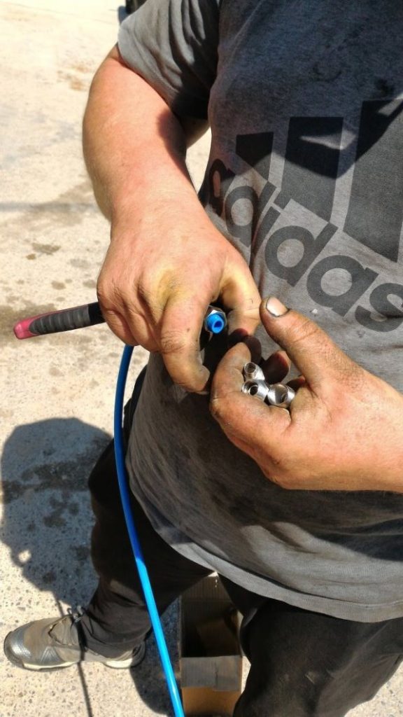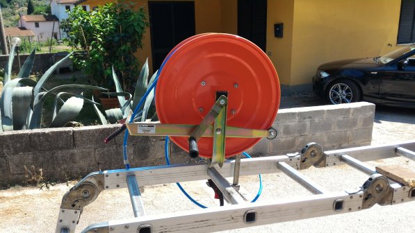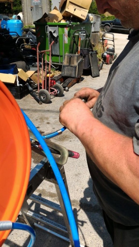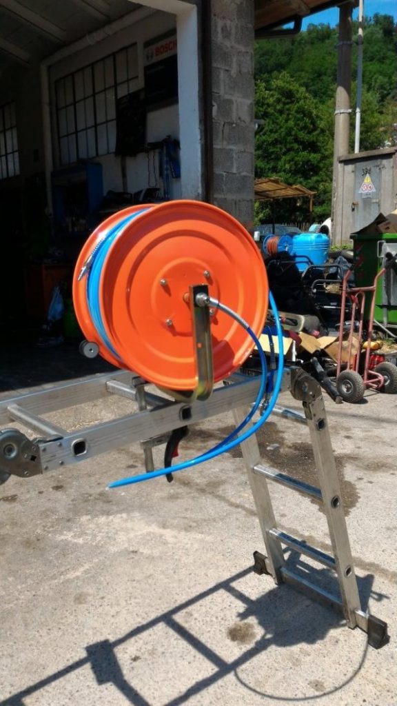 A distanza di tre settimane dall’ultima comunicazione con Agrieuro ho portato il tubo e l’avvolgitubo al mio meccanico agricolo di fiducia, Thomas un simpatico tedesco che in Italia ha trovato l’amore ed un lavoro che lo appassiona, per l’agognato montaggio.