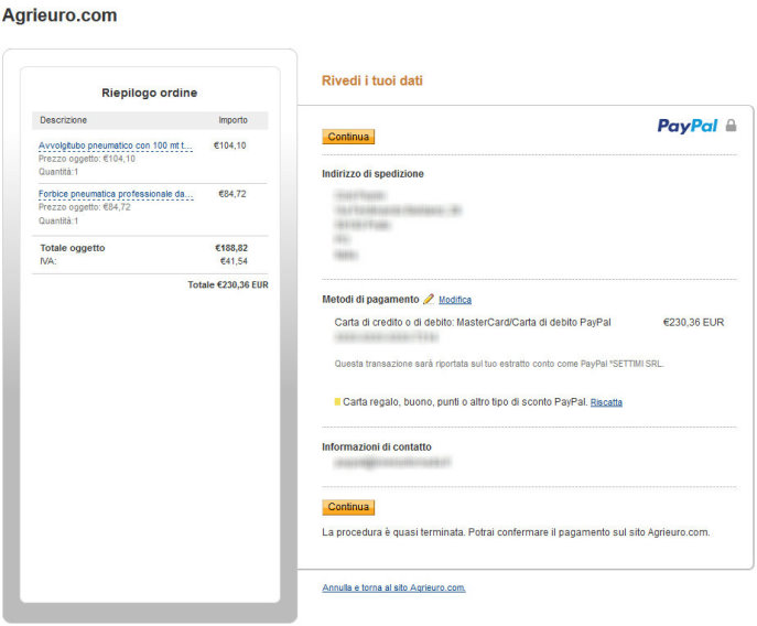 e ricevo la conferma da parte di Agrieuro