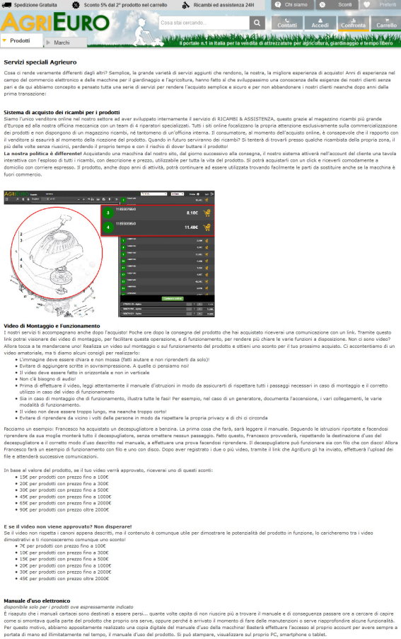 Agrieuro si vanta, sul proprio sito, di essere differente dagli altri venditori per non abbandonare i propri clienti neanche dopo anni dalla prima transazione.