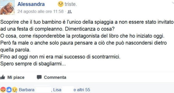 “Scoprire che il tuo bambino è l’unico della spiaggia a non essere stato invitato ad una festa di compleanno. Dimenticanza o cosa?