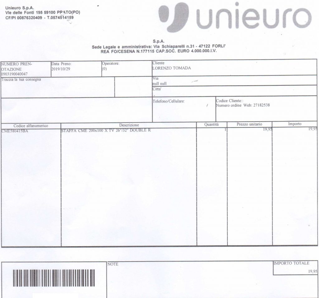 Se si desidera ricevere a casa l’acquisto fatto sul web, la spedizione verrà gestita da Amati Jr con tutte le incognite del caso (leggi la mia esperienza con Amati Jr) altrimenti verrà consegnato gratuitamente al negozio Unieuro selezionato e verremo informati tramite email del suo arrivo e della disponibilità al ritiro.