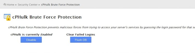 Nei server che gestisco ho una protezione da questi tentativi, cPHulk Brute Force Protection, che permette di bloccare tutti gli indirizzi IP che cercano d’introdursi all’interno del server con intenzioni non molto benevoli (spam).