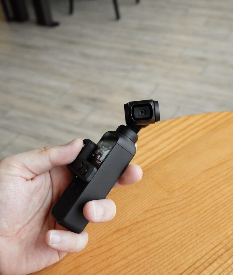 Osmo Pocket ha un piccolissimo display tramite il quale, oltre a riprendere la scena, si accede al menù delle opzioni e due tasti fisici.