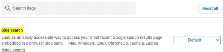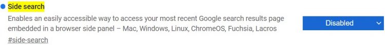 digita nella barra degli indirizzi chrome://flags/#side-search
