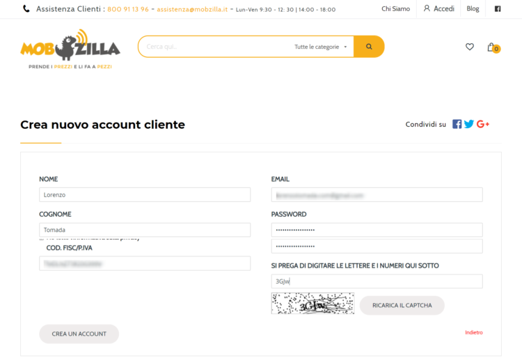 Prima di procedere desidero testare l’assistenza commerciale, raggiungibile telefonicamente al numero verde gratuito 800 91 13 96 dal lunedì al venerdì dalle 9:30 alle 12: 30, la mattina, e dalle 14:00 alle 18:00, al pomeriggio.