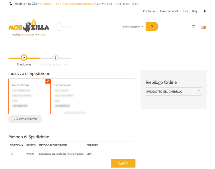 dall’inserimento dell’indirizzo di spedizione, per me diverso rispetto a quello di fatturazione, e alla sua tipologia (corriere espresso SDA)
