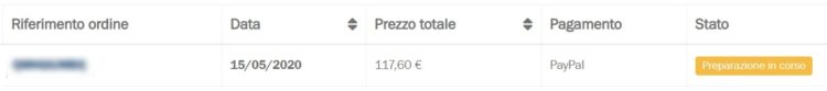 Cambia lo stato dell’ordine, adesso è in preparazione.