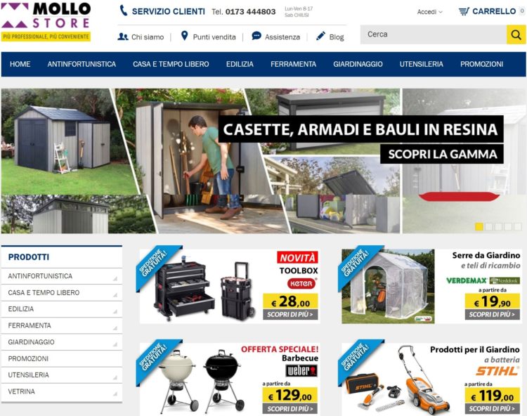 Mollo store è il negozio online del Gruppo Mollo specializzato in prodotti per antinfortunistica, casa e tempo libero, edilizia, ferramenta, giardinaggio e utensileria