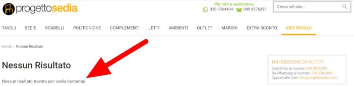 Considerata l’impostazione user-friendly del sito pensavo che fosse un utile strumento per trovare facilmente lo specifico prodotto al quale ero interessato; nel box ho inserito i termini “sedia pocket” (dove pocket è il modello) e “sedia Bontempi” (dove Bontempi è chiaramente il produttore).