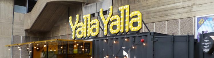 Yalla Yalla è una catena di “street food” libanese e mediorientale che per la prima volta, dalla sua apertura a Soho nel 2008, ha scelto una soluzione “mobile” per la propria attività commerciale; è composto da un solo container ed i clienti possono effettuare il classico take away oppure consumare nello spazio esterno attrezzato.