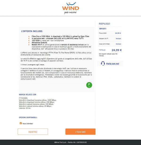 Wind ricorda che l’attivazione avverrà nei tempi più brevi possibili e che i tempi medi di attivazione dei servizio sono circa 20 giorni, compatibilmente alle verifiche inerenti l’effettiva attivabilità tecnica sulla linea.