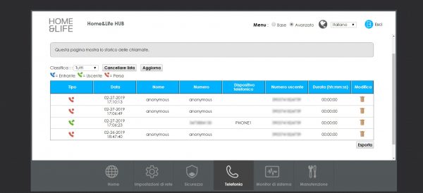 Tra le opzioni interessanti, attraverso il pannello di controllo, vi è quella di monitorare la cronologia delle chiamate per sapere chi ci ha cercato e quali numeri sono stati chiamati.