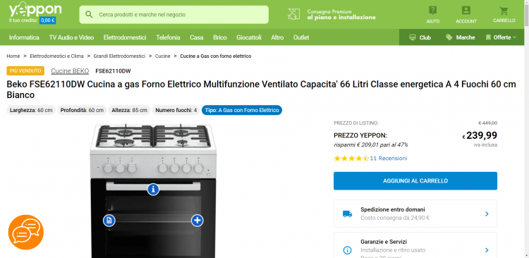 Ho deciso di acquistare su Yeppon una cucina a gas Beko FSE62110DW per uno dei prezzi migliori trovati online e per la reputazione positiva della quale gode nei principali siti recensioni online.