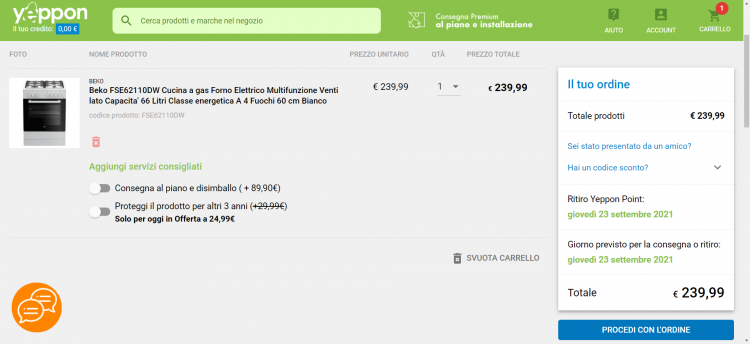 Dopo aver individuato nella cucina Beko FSE62110DW il prodotto ideale per le mie necessità, ho effettuato una ricerca online basandomi su parametri come prezzo, tempi e costi di spedizione oltre che, naturalmente, per l’affidabilità dello store.
