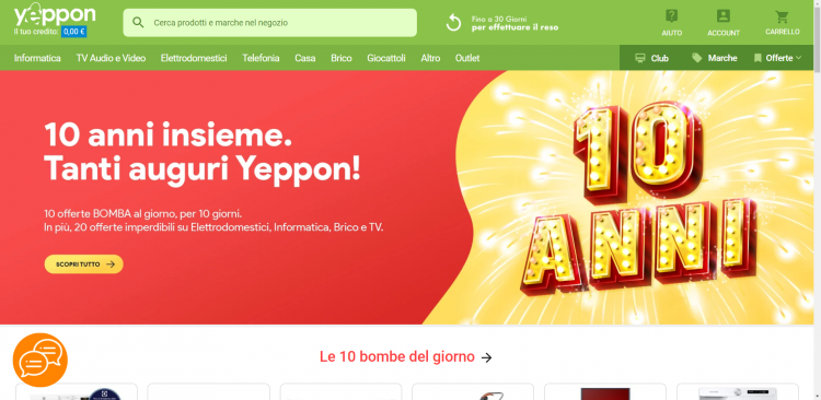 Yeppon (recensioni, opinioni e commenti anche di altri utenti in fondo a questa pagina) è un sito e-commerce italiano nel quale è possibile scegliere e acquistare prodotti di qualsiasi categoria: elettronica, informatica, elettrodomestici, telefonia, videogiochi e console, brico, articoli per i motori ma anche per la casa tanto per citare le principali di vendita.